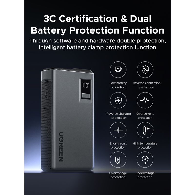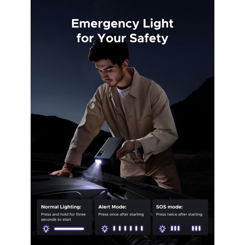 El Arrancador de Autos Recargable UGREEN ES702 es tu compañero confiable para cualquier emergencia en carretera. Con su potente batería de 12.000mAh, este dispositivo no solo te permite arrancar tu coche con una corriente de hasta 1000A, sino que también funciona como una práctica batería externa para cargar tus dispositivos electrónicos. Su pantalla digital te ofrece una lectura clara del estado de la batería, mientras que sus puertos USB-A y USB-C garantizan la carga rápida de tus gadgets. Compacto, poderoso y fácil de usar, es el accesorio esencial que te brindará seguridad en cada trayecto.